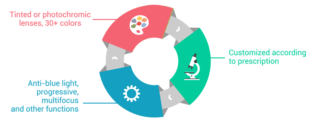 Choose your own lens color and function to accurately match your prescription.